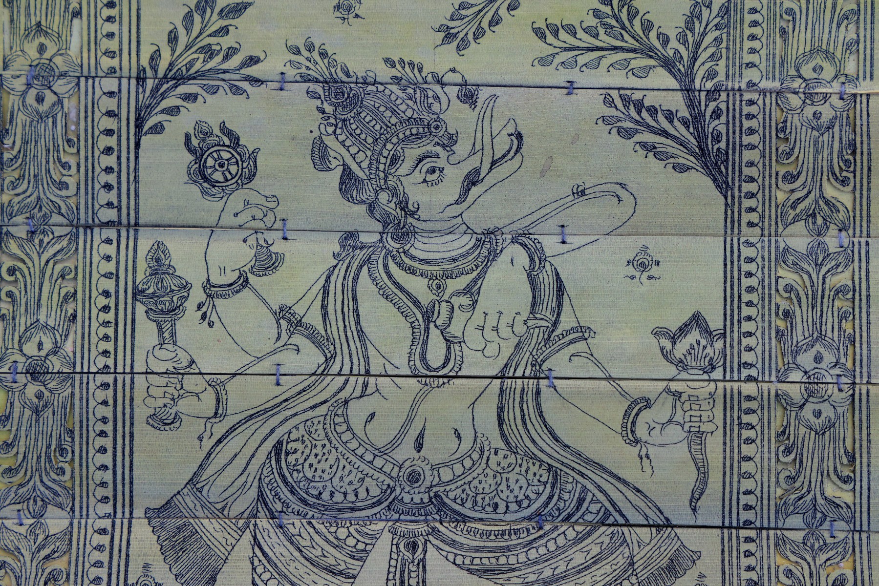 The 'Tala' Advantage: Etched Durability: Unlike surface paintings, the artwork is incised into the leaf using an iron stylus and filled with natural lampblack ink. This creates a permanent, water-resistant etching that does not peel or fade over time. Handling & Placement: • Fold, Don't Roll: Composed of interlocking slats tied with a cord. They are designed to be folded like a stack of cards or a fan. Never try to roll them • Clean Hands Only: Handle by the edges or the connecting cords. Framing Recommendations • Float Mounting on a mat board to showcase the unique slat structure and jagged edges. • Use Spacers: Ask your framer for spacers to keep the glass from pressing directly against the surface. Display Options: You can frame them fully expanded to tell the story, or partially folded if you prefer a sculptural look (requires a shadow box frame).
