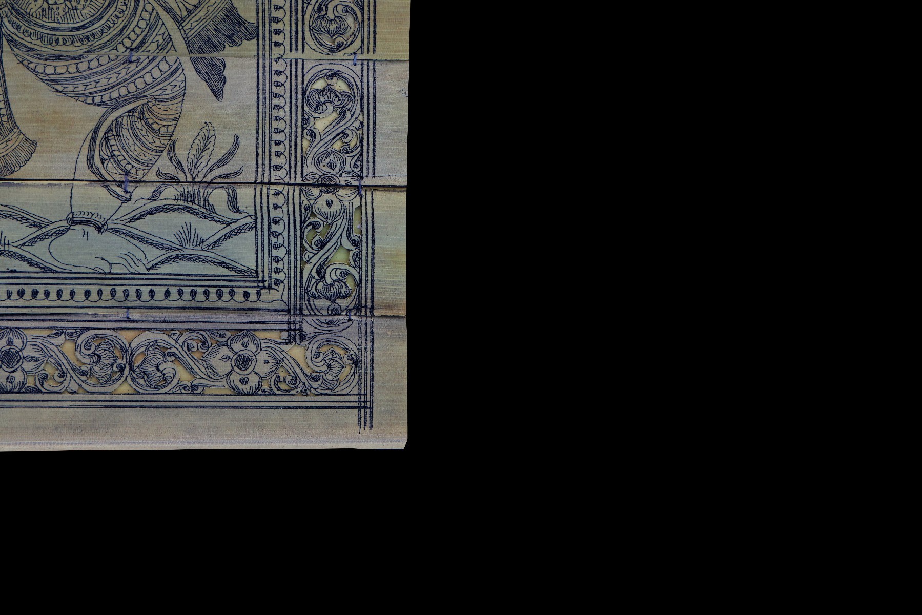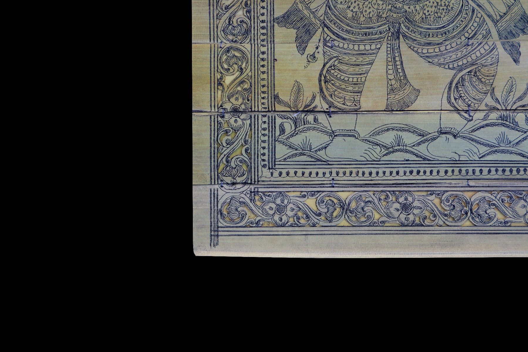 The 'Tala' Advantage: Etched Durability: Unlike surface paintings, the artwork is incised into the leaf using an iron stylus and filled with natural lampblack ink. This creates a permanent, water-resistant etching that does not peel or fade over time. Handling & Placement: • Fold, Don't Roll: Composed of interlocking slats tied with a cord. They are designed to be folded like a stack of cards or a fan. Never try to roll them • Clean Hands Only: Handle by the edges or the connecting cords. Framing Recommendations • Float Mounting on a mat board to showcase the unique slat structure and jagged edges. • Use Spacers: Ask your framer for spacers to keep the glass from pressing directly against the surface. Display Options: You can frame them fully expanded to tell the story, or partially folded if you prefer a sculptural look (requires a shadow box frame).